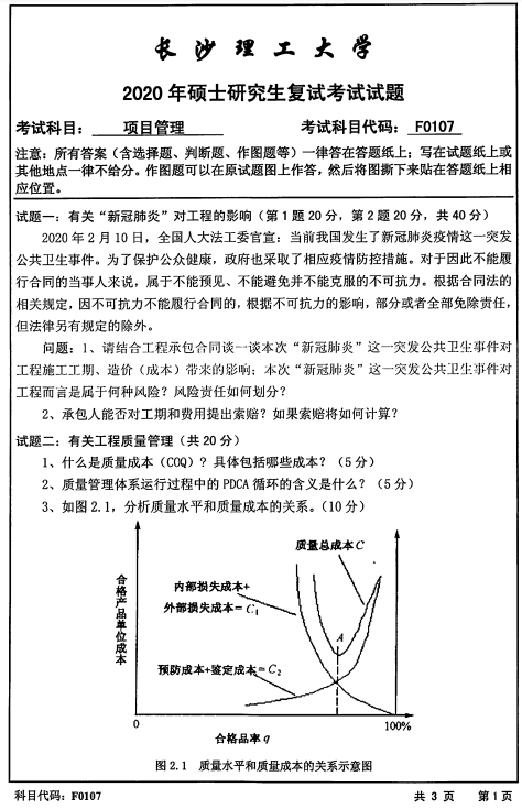 以上就是小編整理的“復試真題:長沙理工大學F0107項目管理2020年碩士研究生招生考試復試試題”的全部內容!更多真題資料請關注“考研專業課真題”欄目!祝考研成功!