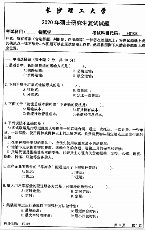 以上就是小編整理的“復試真題:長沙理工大學F0108物流學2020年碩士研究生招生考試復試試題”的全部內容!更多真題資料請關注“考研專業課真題”欄目!祝考研成功!