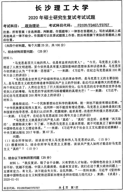 以上就是小編整理的“復(fù)試真題:長(zhǎng)沙理工大學(xué)F0109、F0407、F0707政治理論2020年碩士研究生招生考試復(fù)試試題”的全部?jī)?nèi)容!更多真題資料請(qǐng)關(guān)注“考研專業(yè)課真題”欄目!祝考研成功!