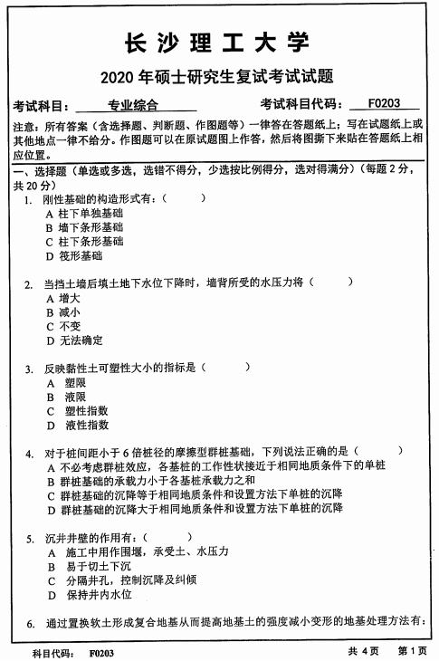 ?原文標題:長沙理工大學2020年碩士研究生復試試題