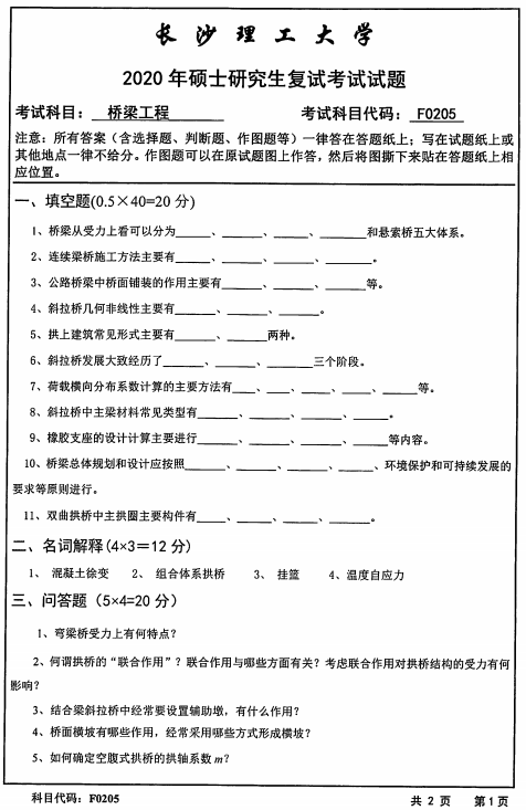 以上就是小編整理的“復試真題:長沙理工大學F0205橋梁工程2020年碩士研究生招生考試復試試題”的全部內容!更多真題資料請關注“考研專業課真題”欄目!祝考研成功!