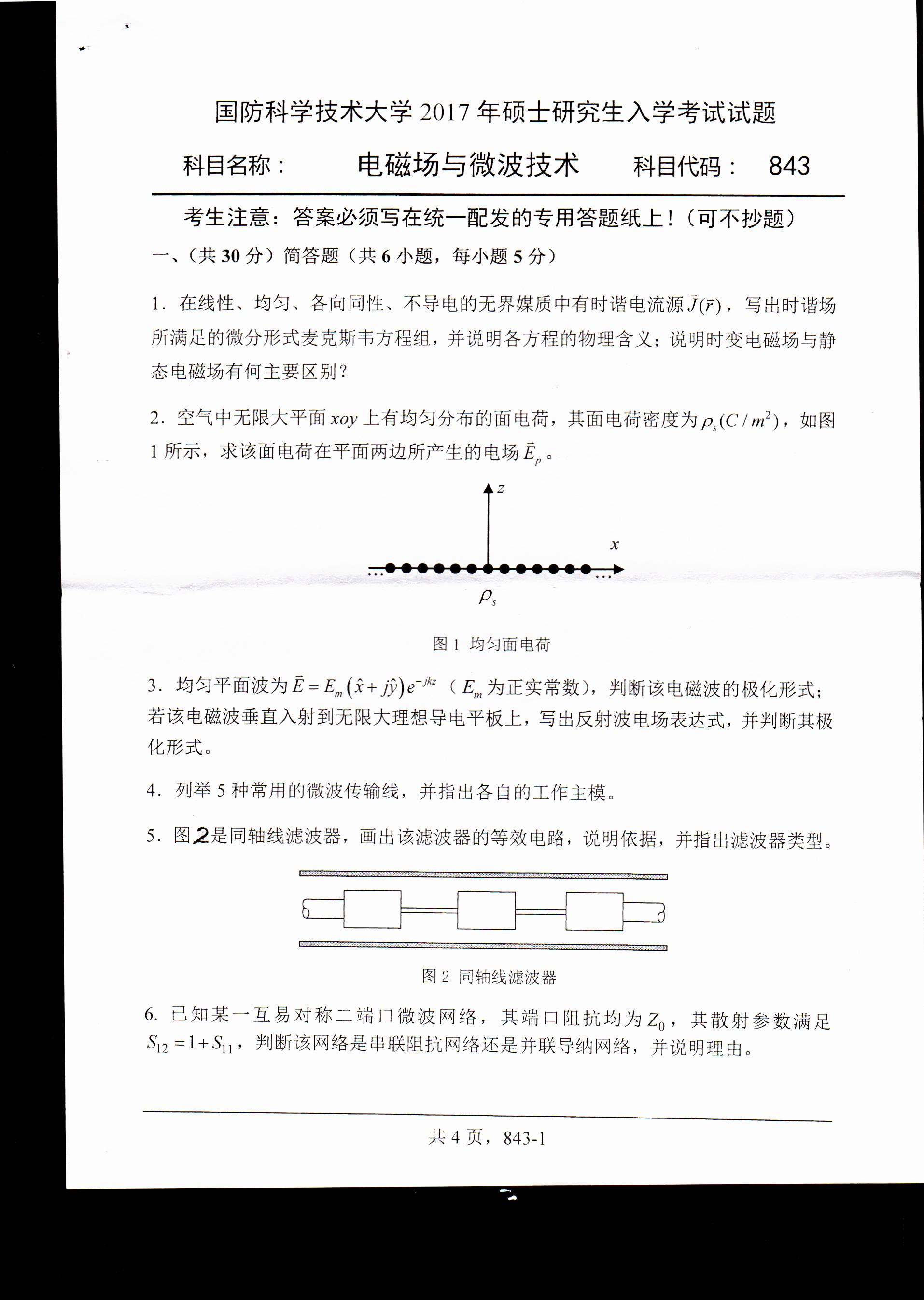 以上就是“考研真題:國防科技大學電磁場與微波技術2017年碩士研究生專業課試題”的相關內容,更多考研信息,請持續關注。