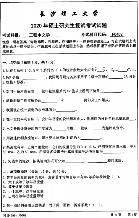 以上就是小編整理的“復試真題:長沙理工大學F0402工程水文學2020年碩士研究生招生考試復試試題”的全部內容!更多真題資料請關注“考研專業課真題”欄目!祝考研成功!