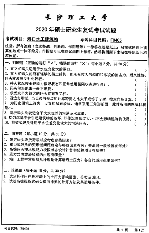以上就是小編整理的“復試真題:長沙理工大學F0405港口水工建筑物2020年碩士研究生招生考試復試試題”的全部內容!更多真題資料請關注“考研專業課真題”欄目!??佳谐晒Γ?/div>