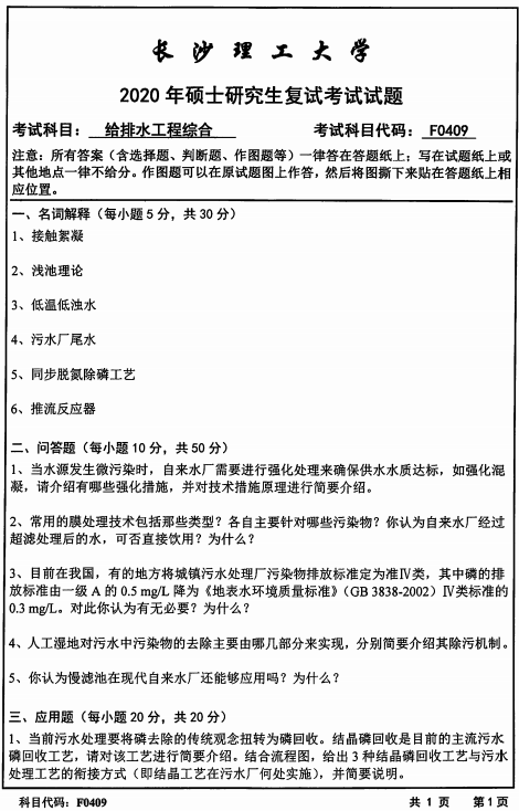 以上就是小編整理的“復試真題:長沙理工大學F0409給排水工程綜合2020年碩士研究生招生考試復試試題”的全部內容!更多真題資料請關注“考研專業課真題”欄目!祝考研成功!