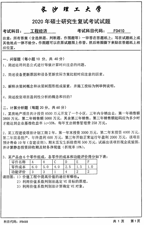以上就是小編整理的“復(fù)試真題:長沙理工大學(xué)F0410工程經(jīng)濟(jì)2020年碩士研究生招生考試復(fù)試試題”的全部內(nèi)容!更多真題資料請關(guān)注“考研專業(yè)課真題”欄目!??佳谐晒Γ?/div>
