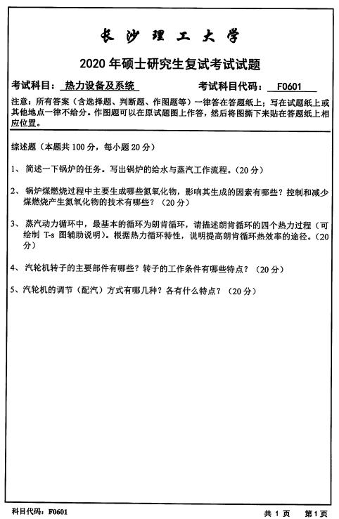以上就是小編整理的“復試真題:長沙理工大學F0601熱力設備及系統2020年碩士研究生招生考試復試試題”的全部內容!更多真題資料請關注“考研專業課真題”欄目!祝考研成功!