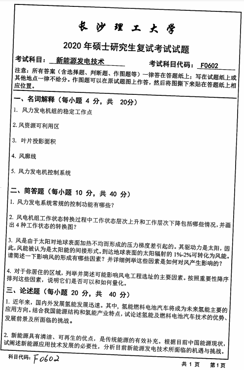 以上就是小編整理的“復試真題:長沙理工大學F0602新能源發電技術2020年碩士研究生招生考試復試試題”的全部內容!更多真題資料請關注“考研專業課真題”欄目!祝考研成功!