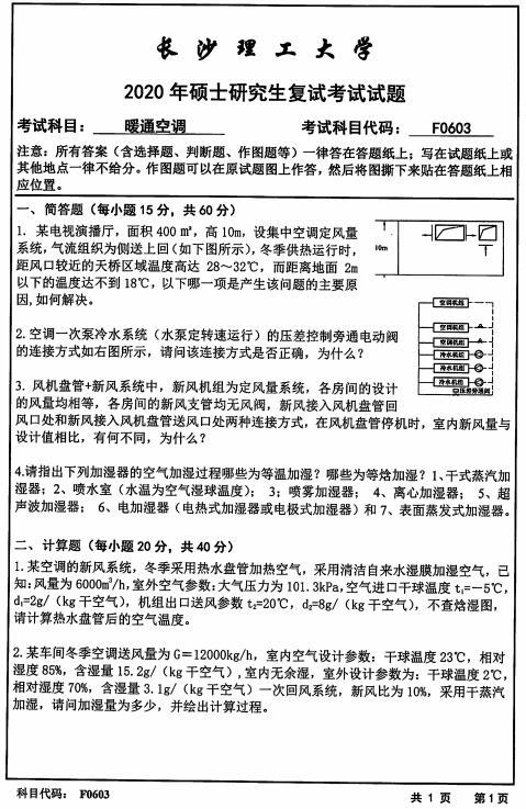 以上就是小編整理的“復試真題:長沙理工大學F0603暖通空調2020年碩士研究生招生考試復試試題”的全部內容!更多真題資料請關注“考研專業課真題”欄目!祝考研成功!