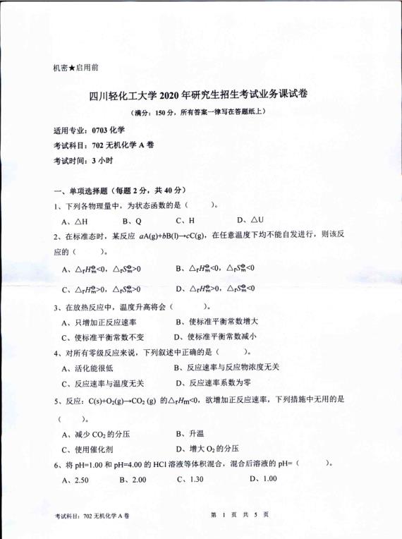 以上就是“考研真題:四川輕化工大學2020年碩士自命題真題702無機化學論”的相關內容,更多考研信息,請持續關注。