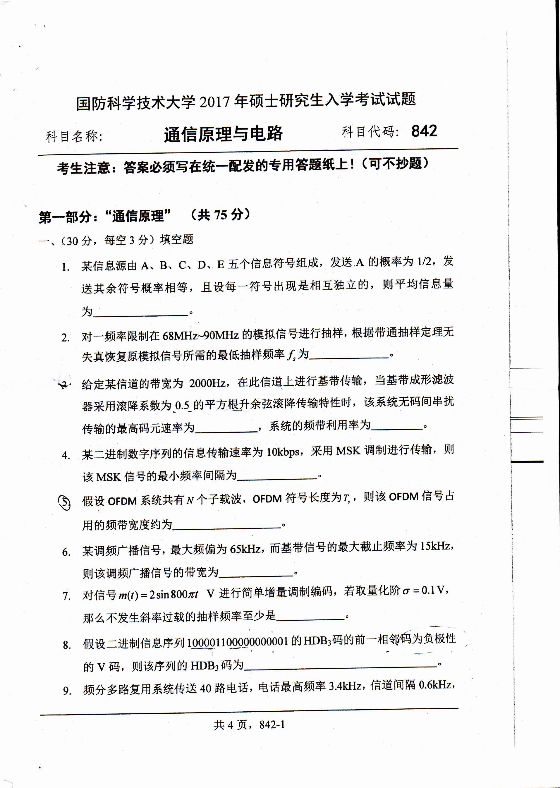 以上就是“考研真題:國防科技大學(xué)通信原理與電路2017年碩士研究生專業(yè)課試題”的相關(guān)內(nèi)容,更多考研信息,請持續(xù)關(guān)注。