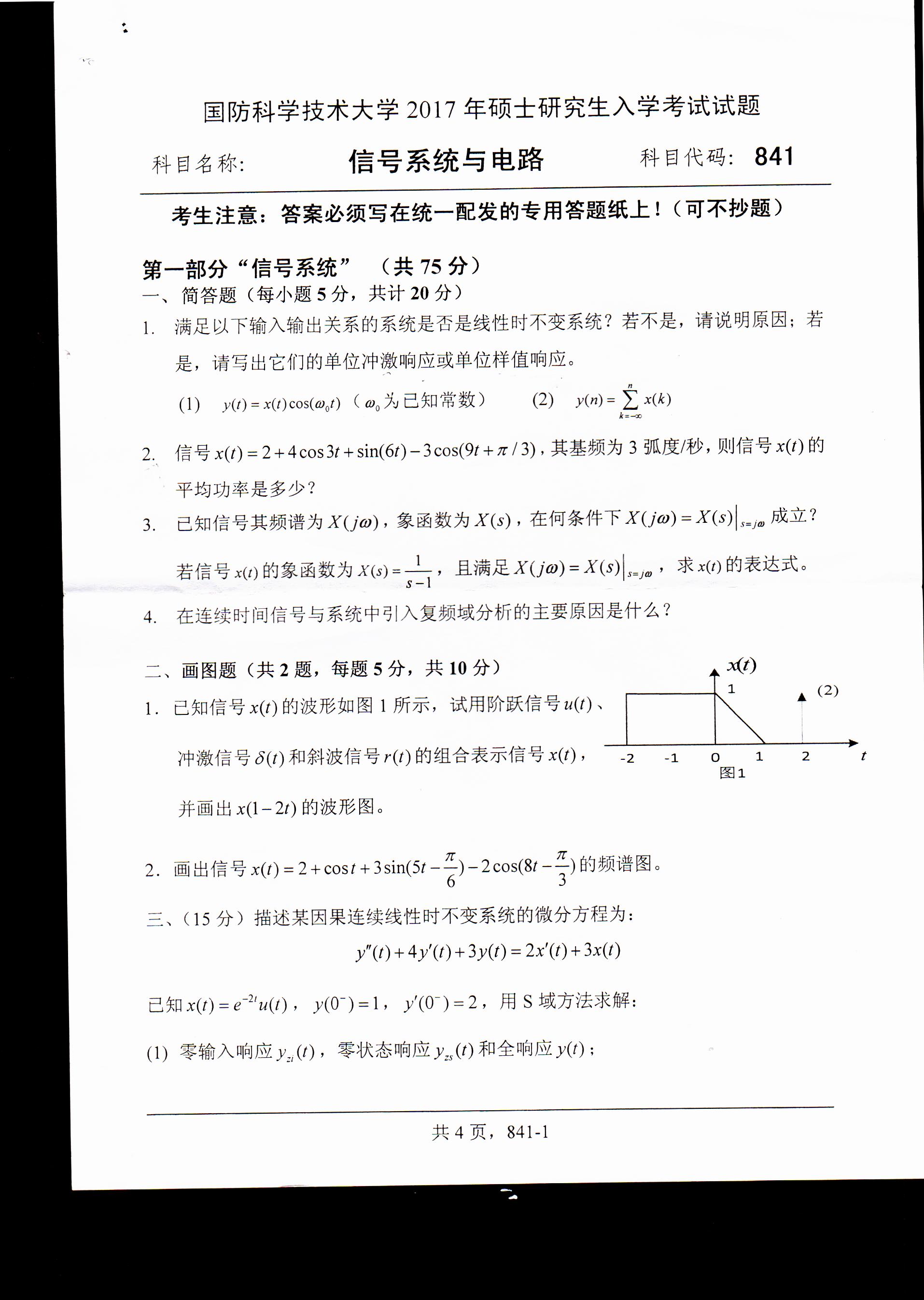 以上就是“考研真題:國防科技大學信號系統與電路2017年碩士研究生專業課試題”的相關內容,更多考研信息,請持續關注。