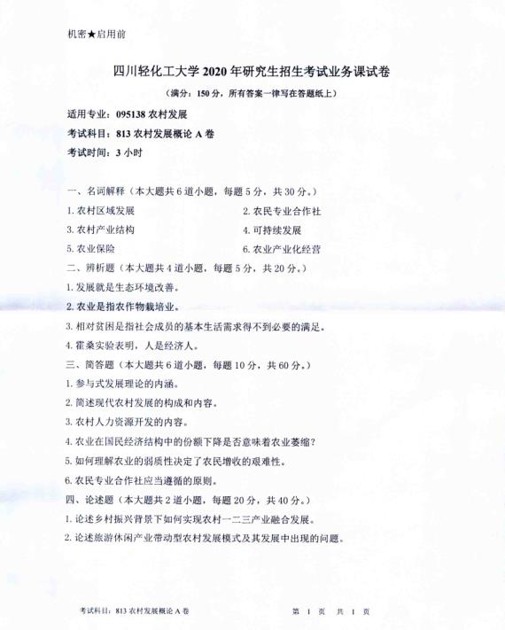 以上就是“考研真題:四川輕化工大學2020年碩士自命題真題813農村發展概論”的相關內容,更多考研信息,請持續關注。