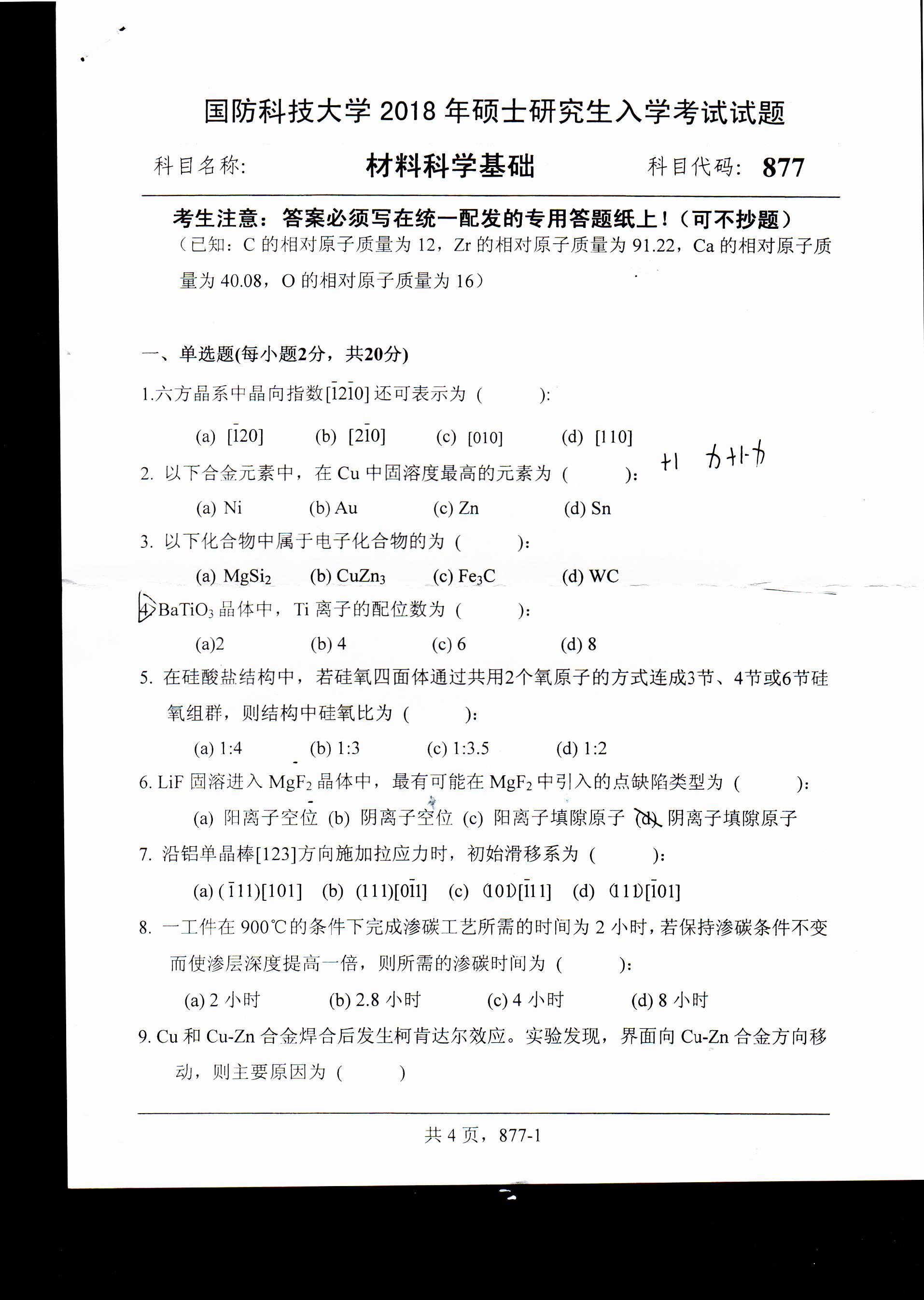 以上就是“考研真題:國防科技大學材料科學基礎2018年碩士研究生專業課試題”的相關內容,更多考研信息,請持續關注。