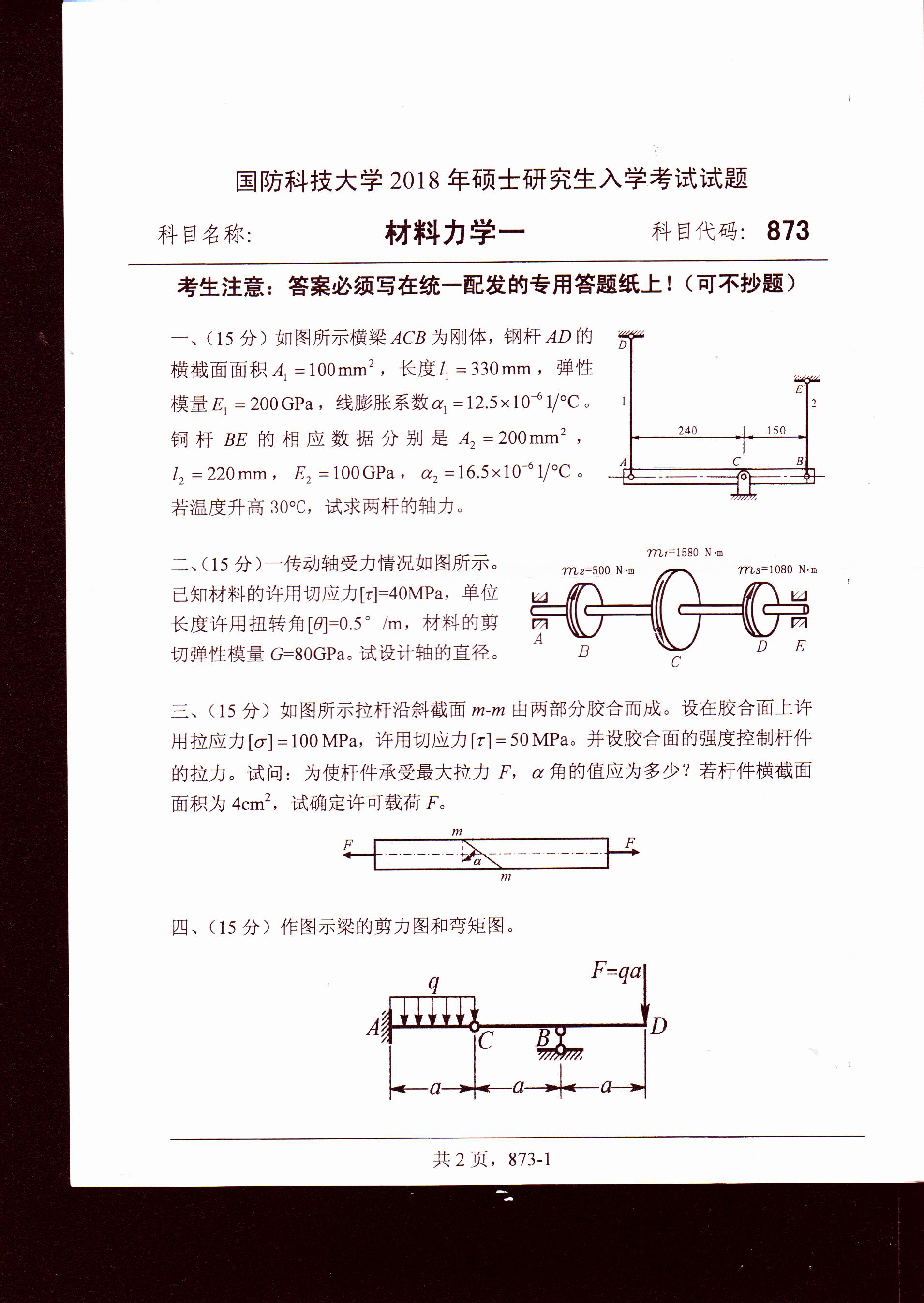 以上就是“考研真題:國防科技大學材料力學2018年碩士研究生專業課試題”的相關內容,更多考研信息,請持續關注。