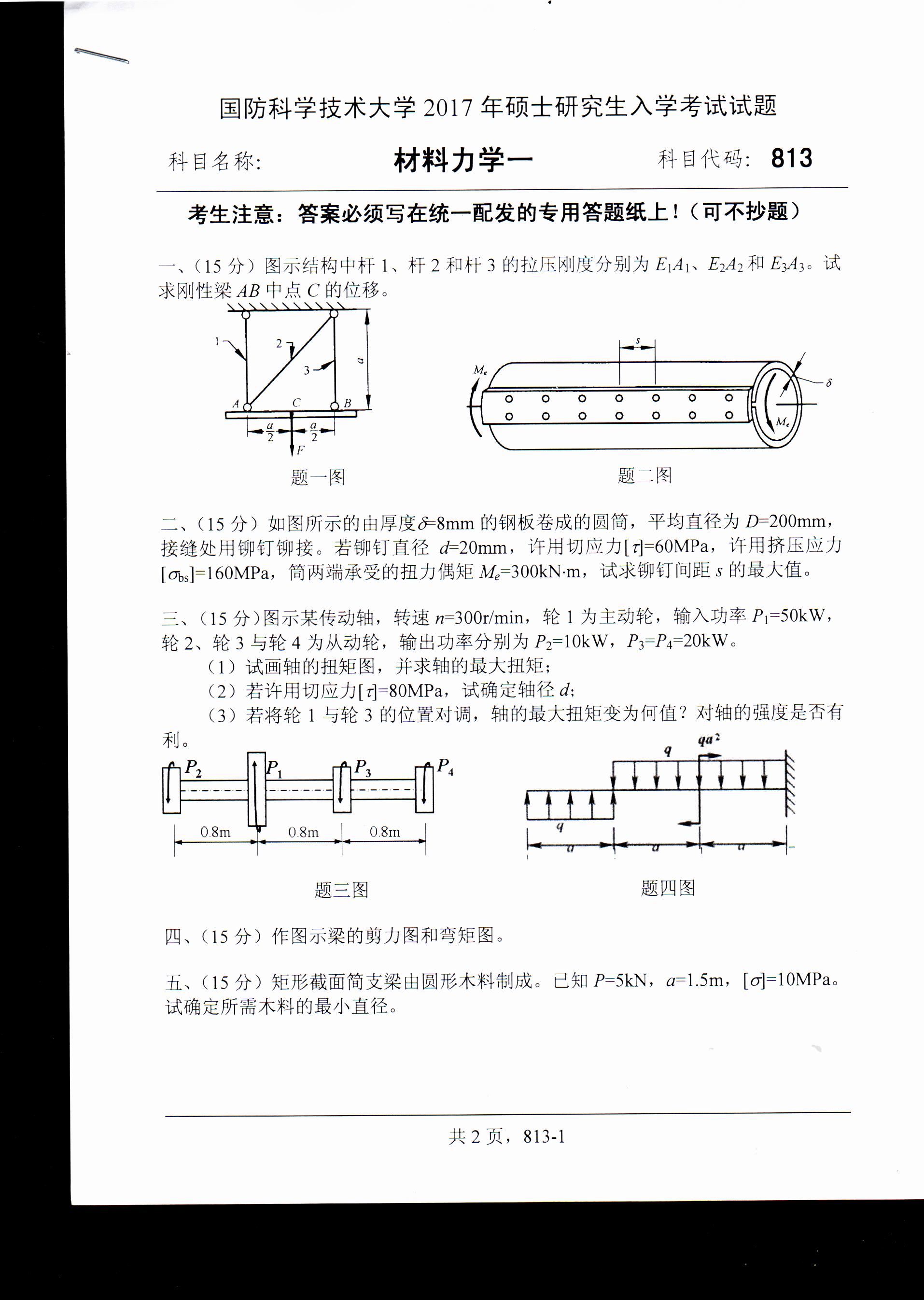 以上就是“考研真題:國(guó)防科技大學(xué)材料力學(xué)2017年碩士研究生專業(yè)課試題”的相關(guān)內(nèi)容,更多考研信息,請(qǐng)持續(xù)關(guān)注。