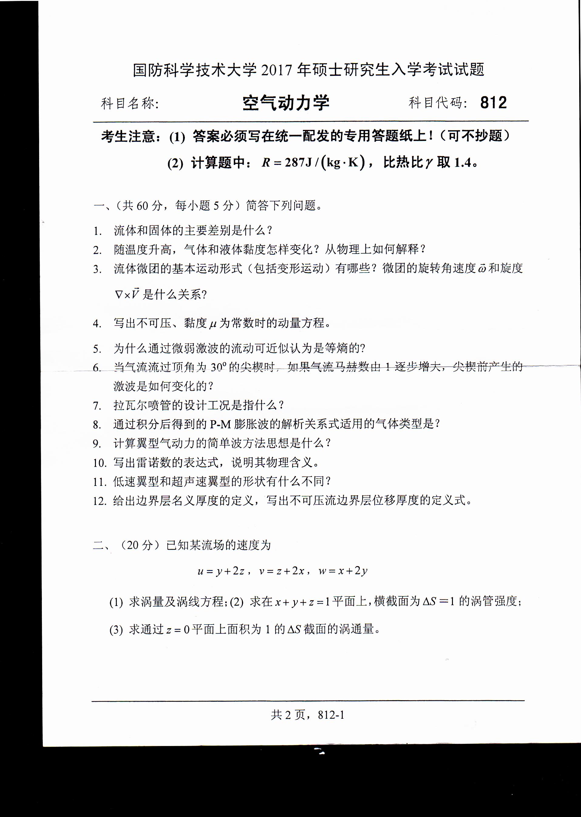 以上就是“考研真題:國防科技大學空氣動力學2017年碩士研究生專業(yè)課試題”的相關(guān)內(nèi)容,更多考研信息,請持續(xù)關(guān)注。