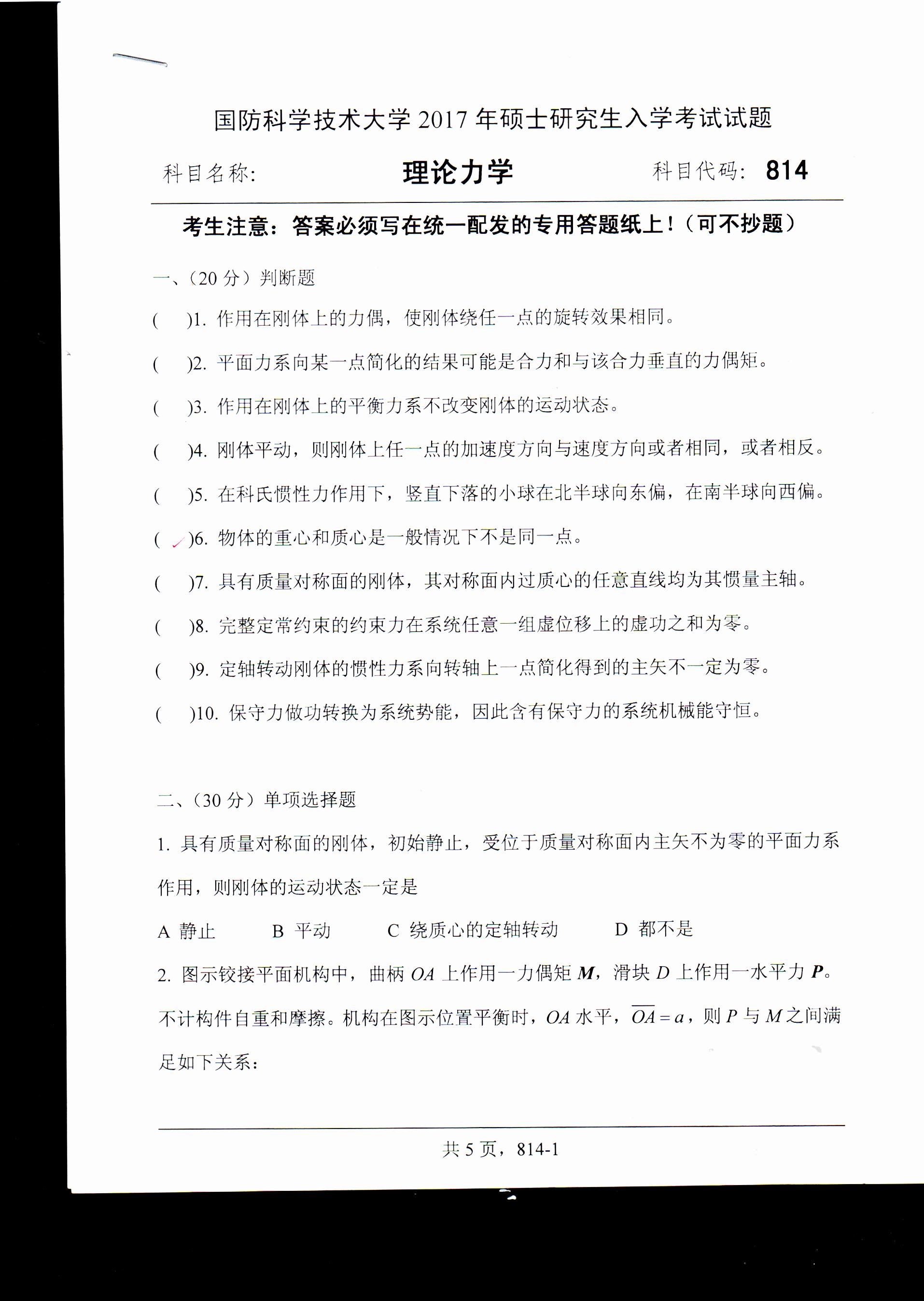 以上就是“考研真題:國防科技大學理論力學2017年碩士研究生專業課試題”的相關內容,更多考研信息,請持續關注。