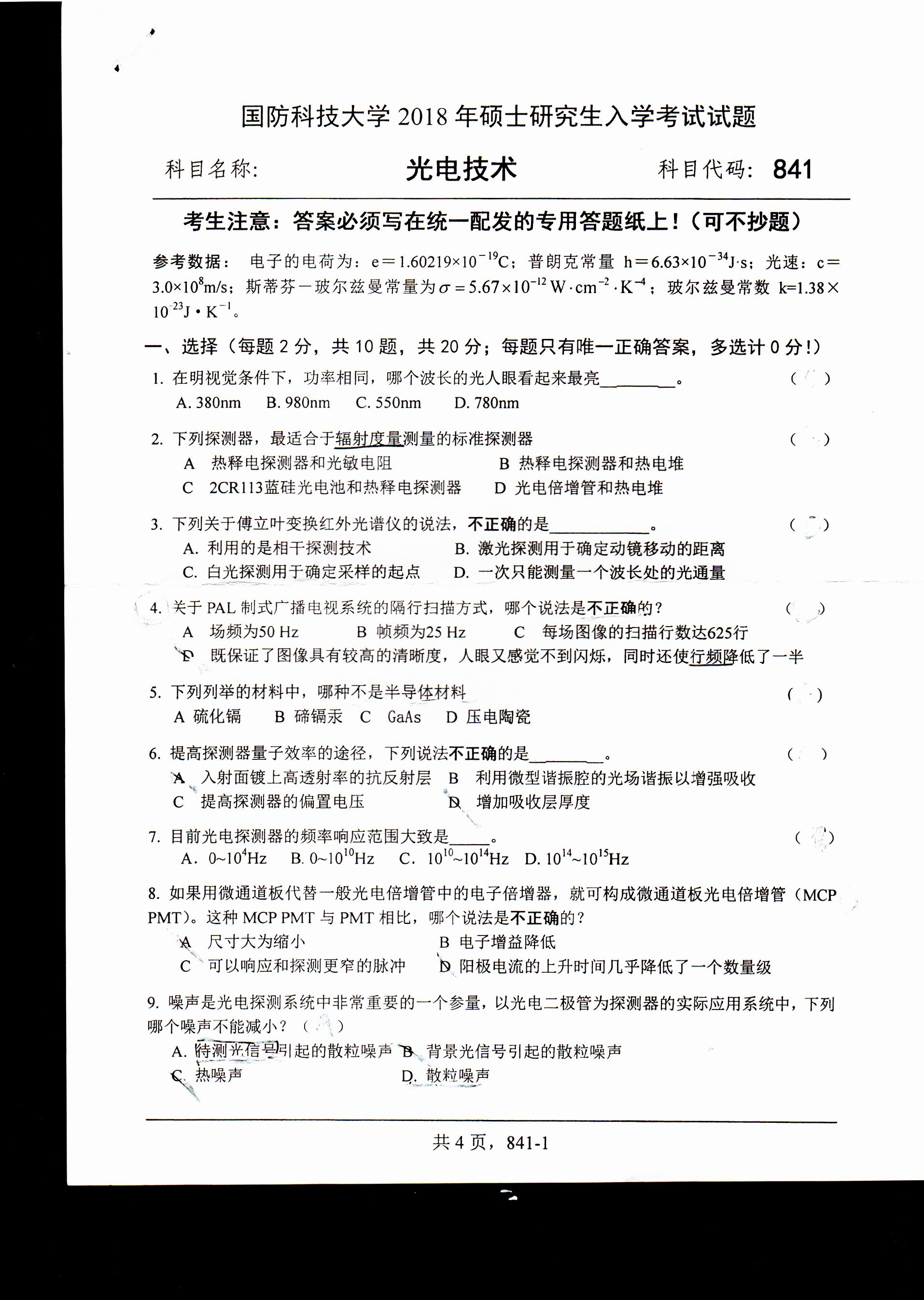 以上就是“考研真題:國防科技大學光電技術2018年碩士研究生專業課試題”的相關內容,更多考研信息,請持續關注。