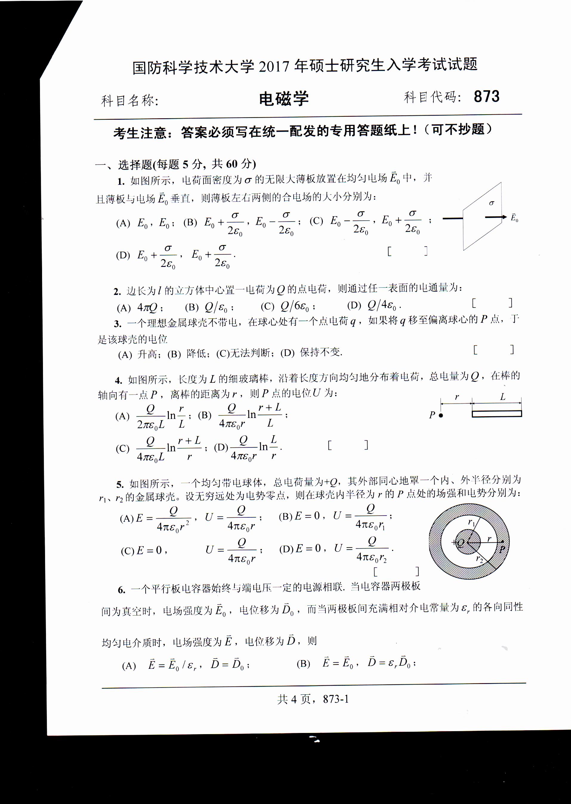 以上就是“考研真題:國防科技大學電磁學2017年碩士研究生專業課試題”的相關內容,更多考研信息,請持續關注。