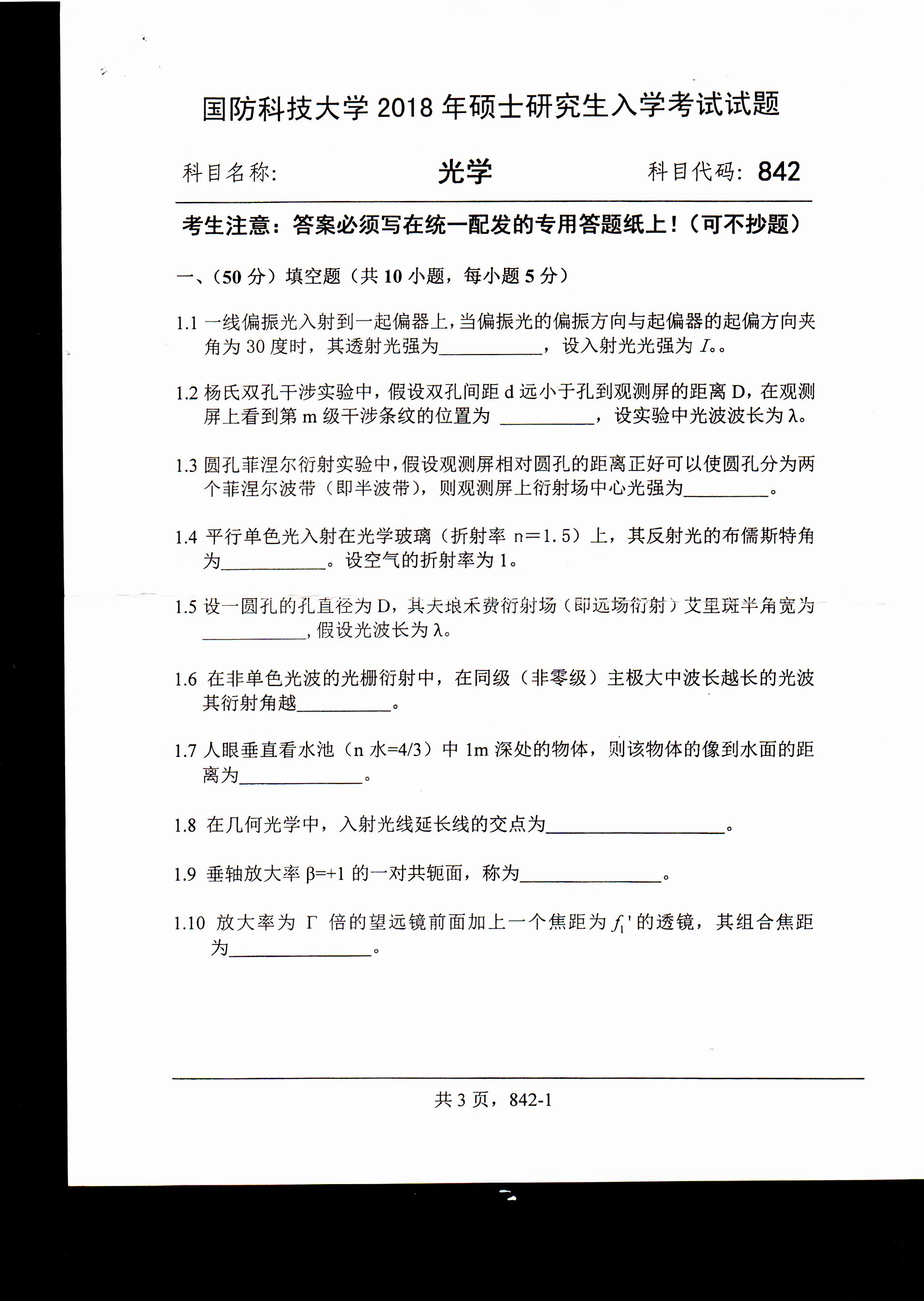 以上就是“考研真題:國防科技大學光學2018年碩士研究生專業(yè)課試題”的相關(guān)內(nèi)容,更多考研信息,請持續(xù)關(guān)注。