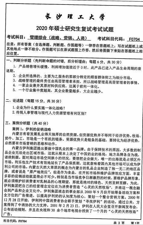 以上就是小編整理的“復試真題:長沙理工大學F0704管理綜合(戰略管理、營銷管理、人力資源管理)2020年碩士研究生招生考試復試試題”的全部內容!更多真題資料請關注“考研專業課真題”欄目!祝考研成功!