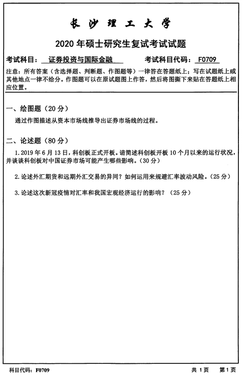 以上就是小編整理的“復試真題:長沙理工大學F0709證券投資與國際金融2020年碩士研究生招生考試復試試題”的全部內容!更多真題資料請關注“考研專業課真題”欄目!祝考研成功!