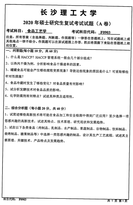以上就是小編整理的“復試真題:長沙理工大學F0903食品工藝學2020年碩士研究生招生考試復試試題”的全部內容!更多真題資料請關注“考研專業課真題”欄目!祝考研成功!
