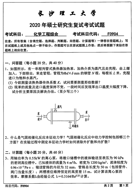 以上就是小編整理的“復試真題:長沙理工大學F0904化學工程綜合2020年碩士研究生招生考試復試試題”的全部內容!更多真題資料請關注“考研專業課真題”欄目!祝考研成功!