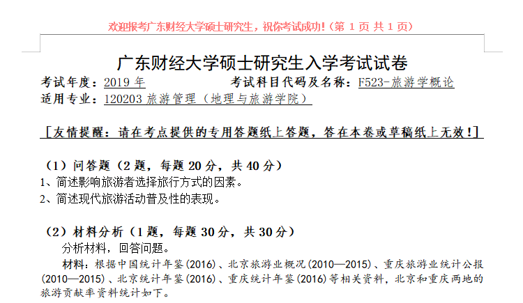 以上就是小編整理的“復試真題:廣東財經大學F523-旅游學概論2019年碩士研究生招生考試復試試題”的全部內容!更多真題資料請關注“考研專業課真題”欄目!祝考研成功!