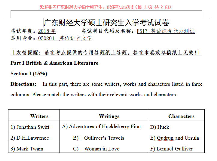 以上就是小編整理的“復試真題:廣東財經大學F517-英語綜合能力測試2018年碩士研究生招生考試復試試題”的全部內容!更多真題資料請關注“考研專業課真題”欄目!??佳谐晒?!