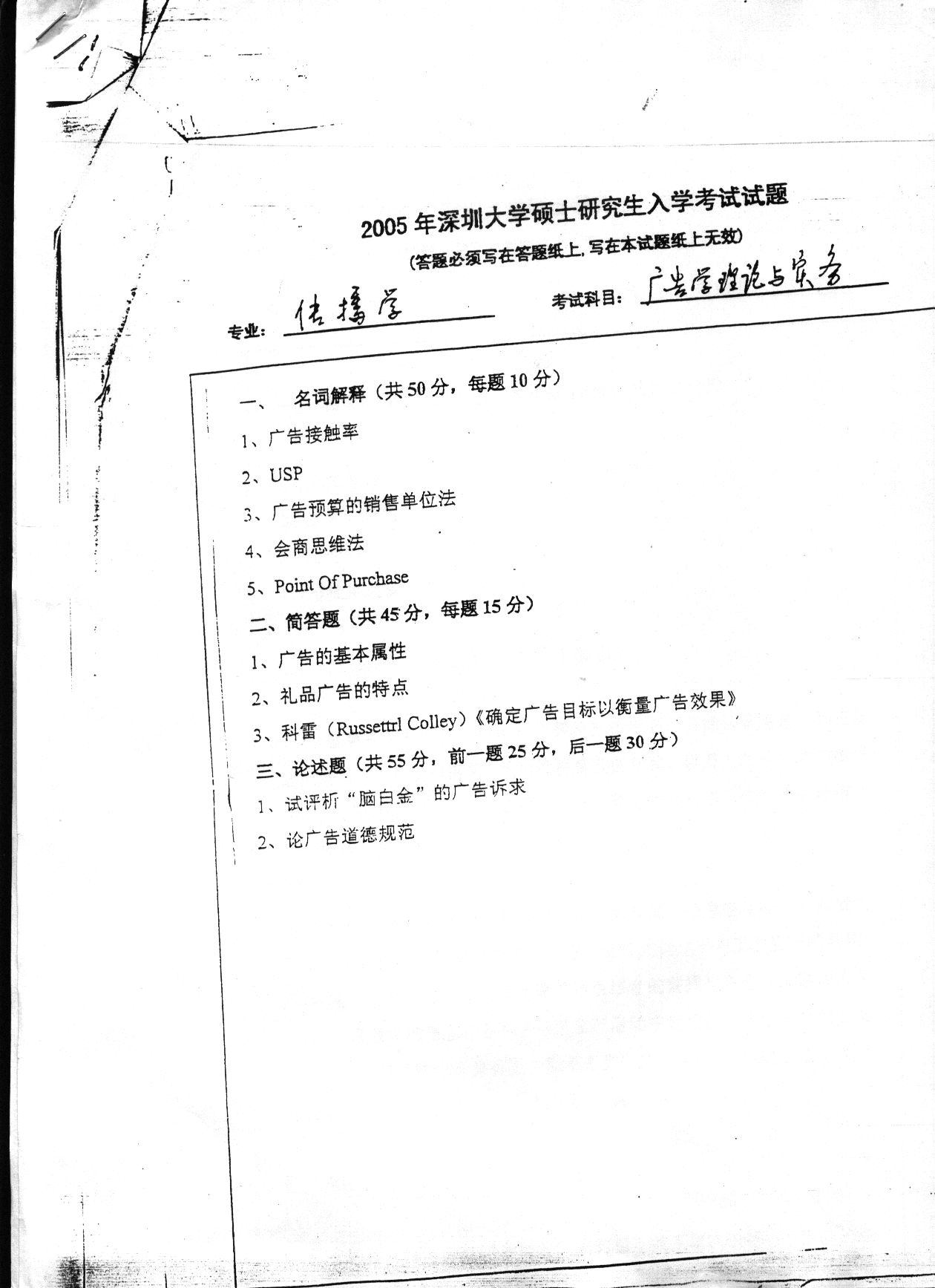 考研真題:深圳大學2005年碩士研究生入學考試廣告學理論與實務試題