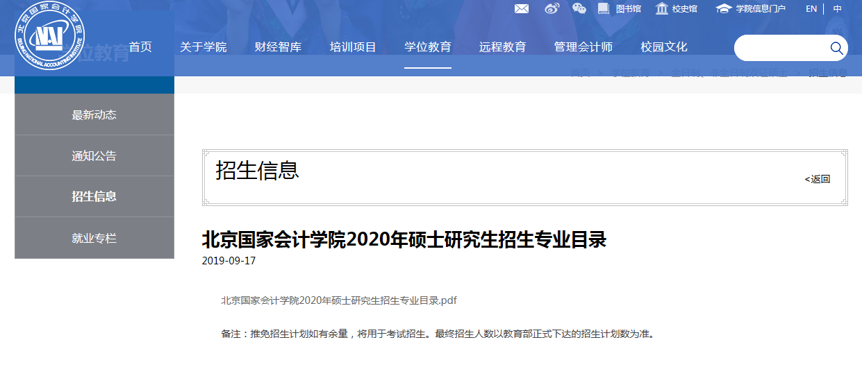 2020年碩士研究生招生專業目錄陸續已出,今天小編給大家整理的是“北京國家會計學院2020年碩士研究生招生專業目錄”的相關內容,有報考意愿的小伙伴要注意下哦!