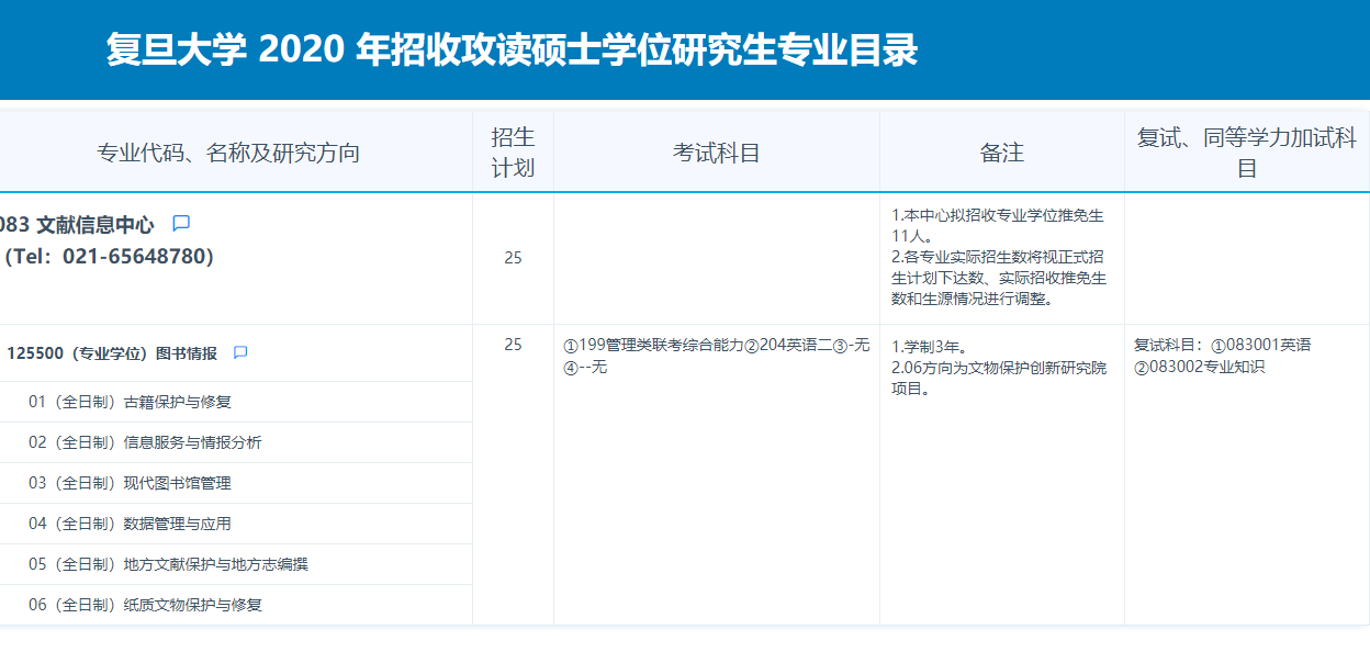 點擊查看:復旦大學2020年招收攻讀碩士學位研究生專業目錄