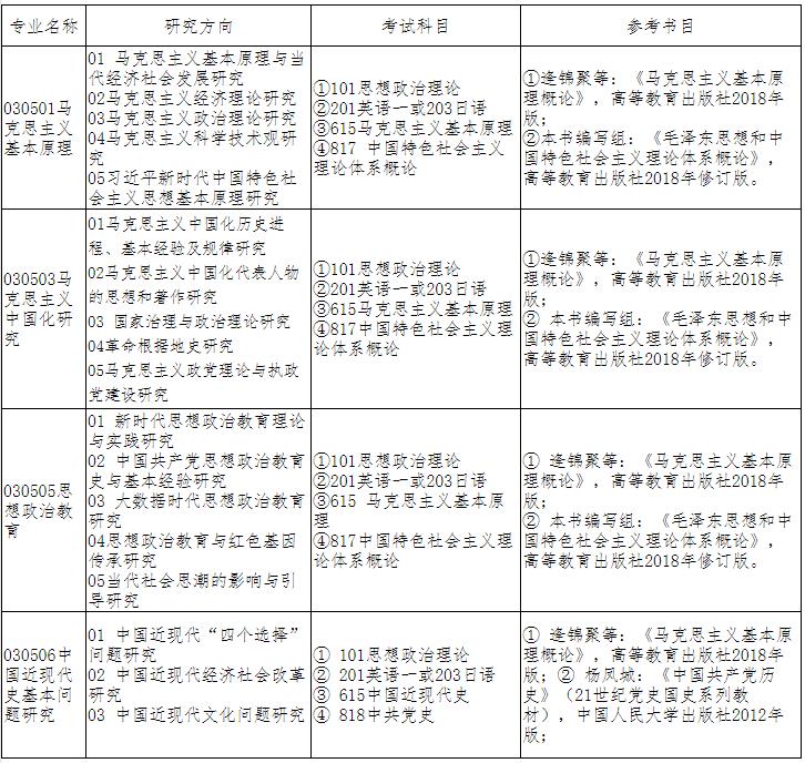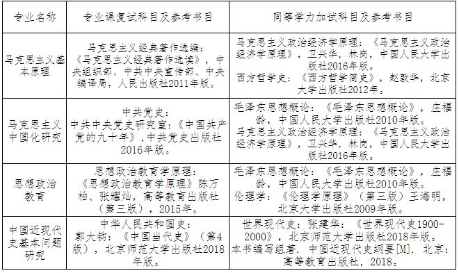 2021年馬克思主義學院碩士研究生招生入學考試復試參考書目