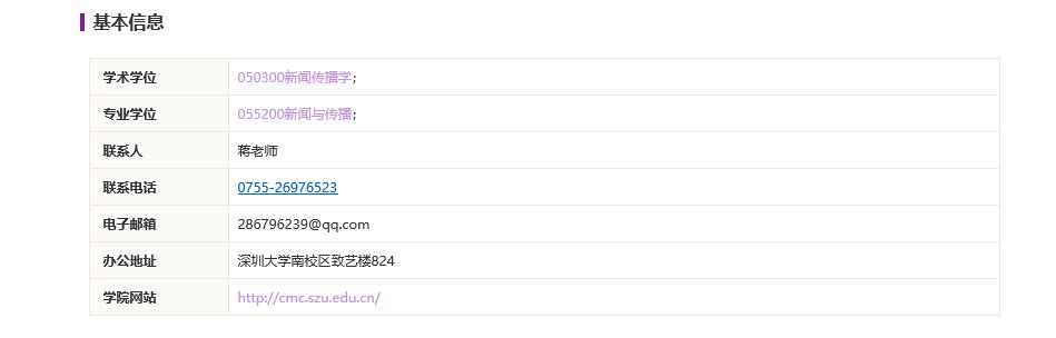 深圳大學新聞傳播學科建立于1985年,是國內高校中較早創建的新聞院系。2006年,成立傳播學院。現有在校全日制本科生1400余人,碩士研究生110余人。下設新聞系、廣告系、播音與主持系、網絡與新媒體教學部,開設新聞學、廣告學、播音與主持、網絡與新媒體四個本科專業。其中廣告學專業創建于1989年,是我國高校中最早開辦廣告學專業的三所院校之一。 深圳大學新聞傳播學科在廣東省乃至全國居于較為先進的地位。目前,已獲得新聞傳播學一級學科博士、碩士學位授予權、新聞與傳播專業碩士學位授予權、廣東省優勢重點學科(一級學科)、廣東省特色專業、國家級傳媒實驗教學示范中心等。 在編教職員62人。在專任教師中,高級職稱30人,正高職14人,其中博士30人,教育部教指委、省級教學名師、廣東省千百十人才等9人,海歸博士和留學訪問學者20人,長期新聞傳播業界工作經驗的高級教師6人,教師年齡分布偏向于年輕化,學歷背景偏向國際化。師資隊伍中有教育部新聞學科教學指導委員、博士研究生導師、廣東省教學名師、廣東省“千百十”優秀人才、碩士研究生導師、深圳市優秀教師等多人。已特聘4位海內外著名學者為“鵬城學者”特聘教授。師資隊伍學科結構合理,學緣結構優異。在校教師開創了國家級精品課程、廣東省精品課程,獲得了廣東省高等教育教學成果一等獎、廣東省哲學社會科學優秀成果獎、近百項國家級和省部級實驗教學獲獎成果等。 深圳大學傳播學院學科建設成果突出。于2005年創建了廣東省高等學校文科重點研究基地——傳媒與文化發展研究中心。科研團隊主持或承擔了國家社會科學基金重大項目、國家社科基金重點項目、國家社會科學基金一般項目和青年項目、國家自然科學基金、國家社科基金藝術學規劃項目、教育部社科規劃、廣東省社科重大項目和規劃項目等高層次科研項目。為地方經濟社會發展服務成果顯著,陸續開辦了社會輿情研究中心、移民文化研究中心、廣告監測中心等,形成了以傳播與文化研究、媒體與社會發展研究、廣告與品牌傳播研究、媒體經濟、城市文化與文化產業研究、影視傳播研究等有特色的研究方向,年均科研經費達到600萬元以上。 傳播學院與國內外新聞傳播院系建立了緊密的交流合作關系,其中包括國際著名的美國密蘇里新聞學院、威斯康辛州立大學媒體與藝術學院、美國科羅拉多大學丹佛分校、英國威斯敏斯特大學傳媒學院、威爾士大學媒體與設計學院、倫敦政治經濟學院、新西蘭梅西大學、韓國東義大學人文學院,以及日本電通集團。同時,與臺灣政治大學、銘傳大學、文化大學、交通大學、玄奘大學、香港中文大學、浸會大學、城市大學等建立了密切的專業合作,為本科生和研究生赴海外學習研修提供了良好的條件。