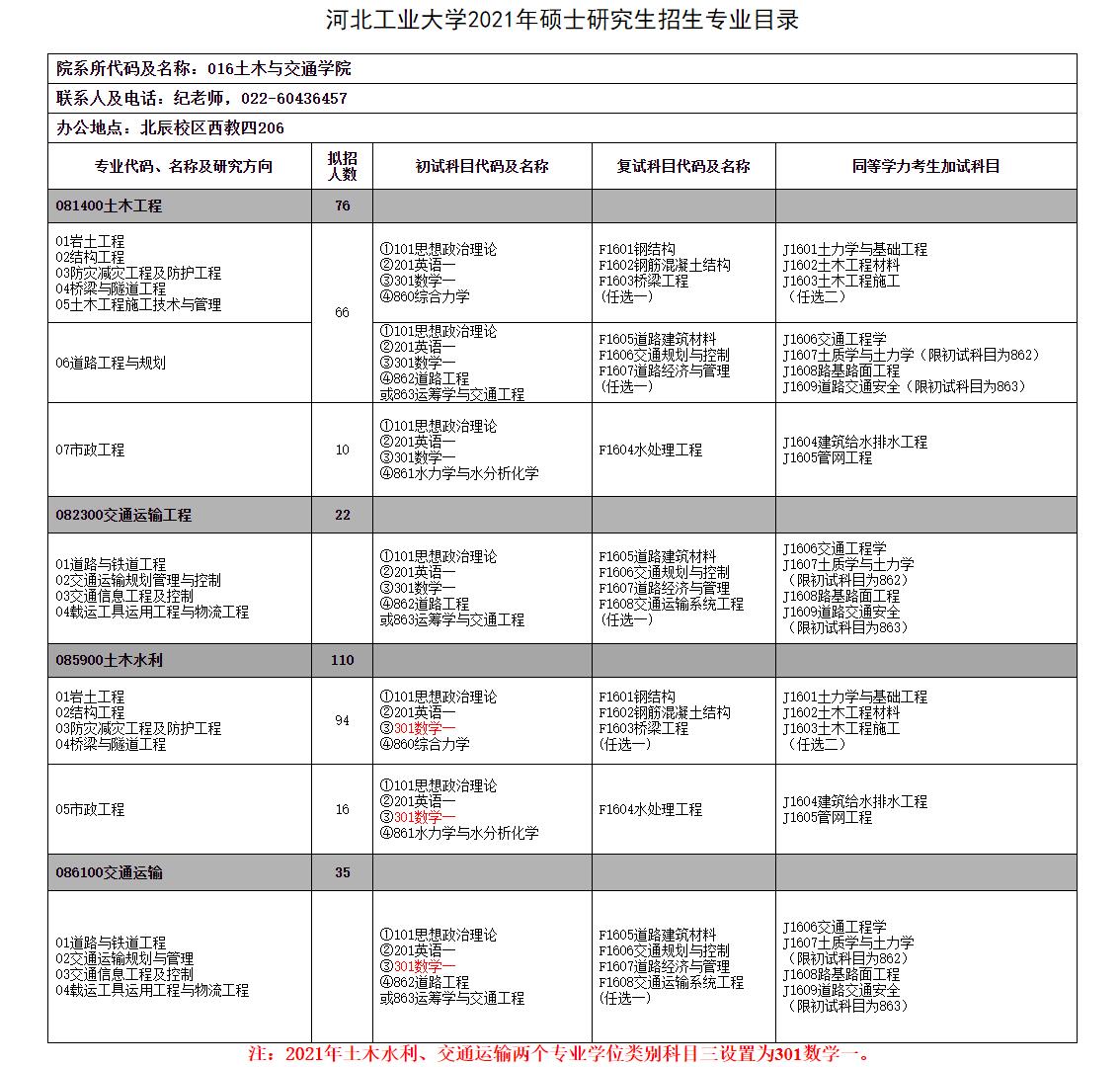 以上就是‘’2021考研專業目錄:河北工業大學土木與交通學院2021年碩士研究生招生專業目錄”的全部內容!祝您考研成功!更多考研動態、院校資訊請持續關注研線網!