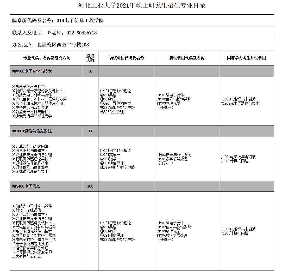 以上就是‘’2021考研專業目錄:河北工業大學電子信息工程學院2021年碩士研究生招生專業目錄”的全部內容!祝您考研成功!更多考研動態、院校資訊請持續關注研線網!