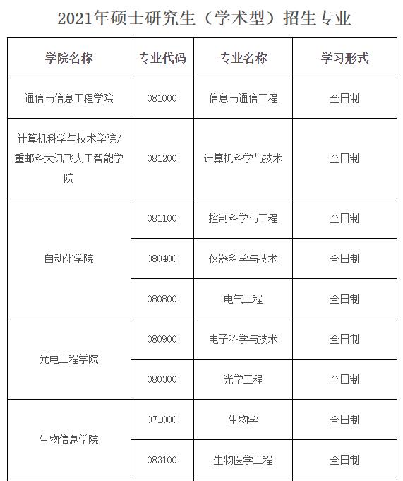 重慶郵電大學2021年研究生招生專業(yè)目錄一覽表