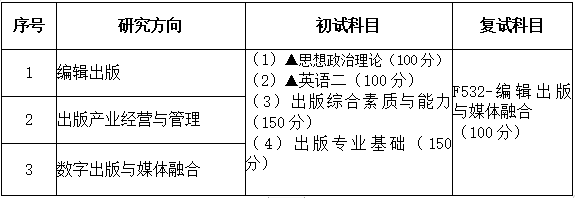 主要課程:出版學概論、出版物編輯與制作、出版物營銷、數字出版及技術、出版企業經營與管理、出版法規。