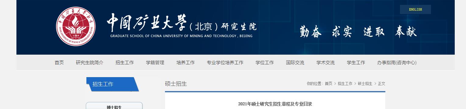 2021考研專業目錄:中國礦業大學(北京)2021年碩士研究生招生專業目錄