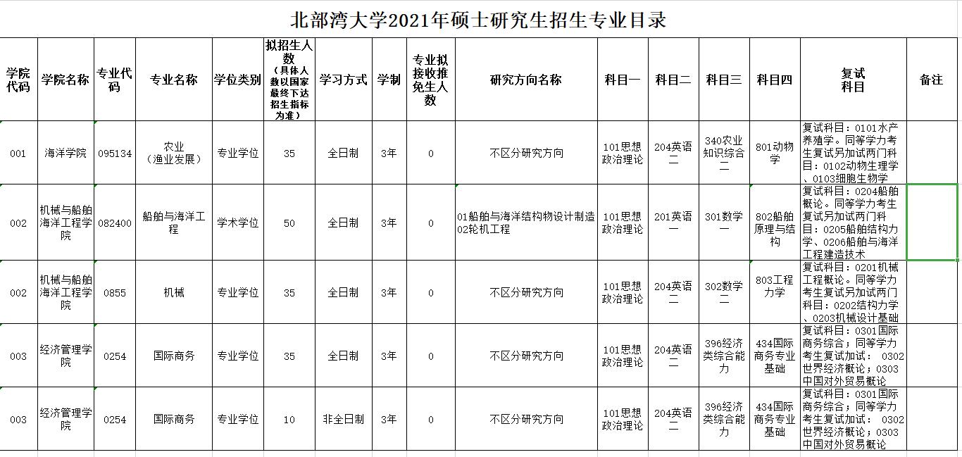 以上就是“2021考研專業(yè)目錄:北部灣大學(xué)2021年碩士研究生招生專業(yè)目錄”的全部?jī)?nèi)容!祝您考研成功!更多考研動(dòng)態(tài)、院校資訊請(qǐng)持續(xù)關(guān)注研線網(wǎng)!