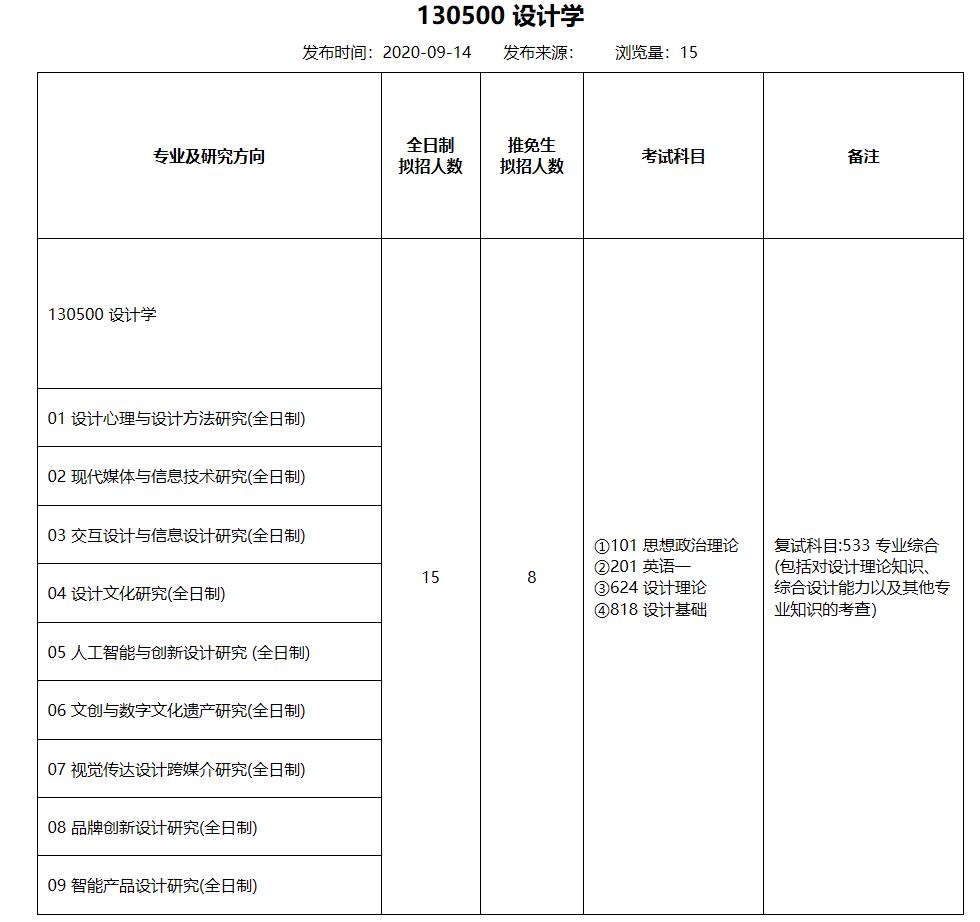 2021考研專業目錄:北京科技大學機械工程學院130500 設計學2021年碩士研究生招生專業目錄