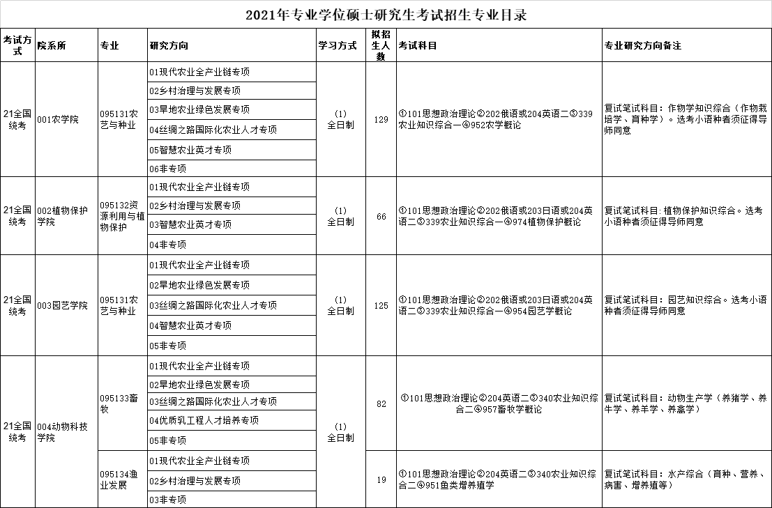 以上就是“2021考研專業目錄:西北農林科技大學2021年專業學位碩士研究生考試招生專業目錄”的全部內容!祝您考研成功!更多考研動態、院校資訊請持續關注研線網!