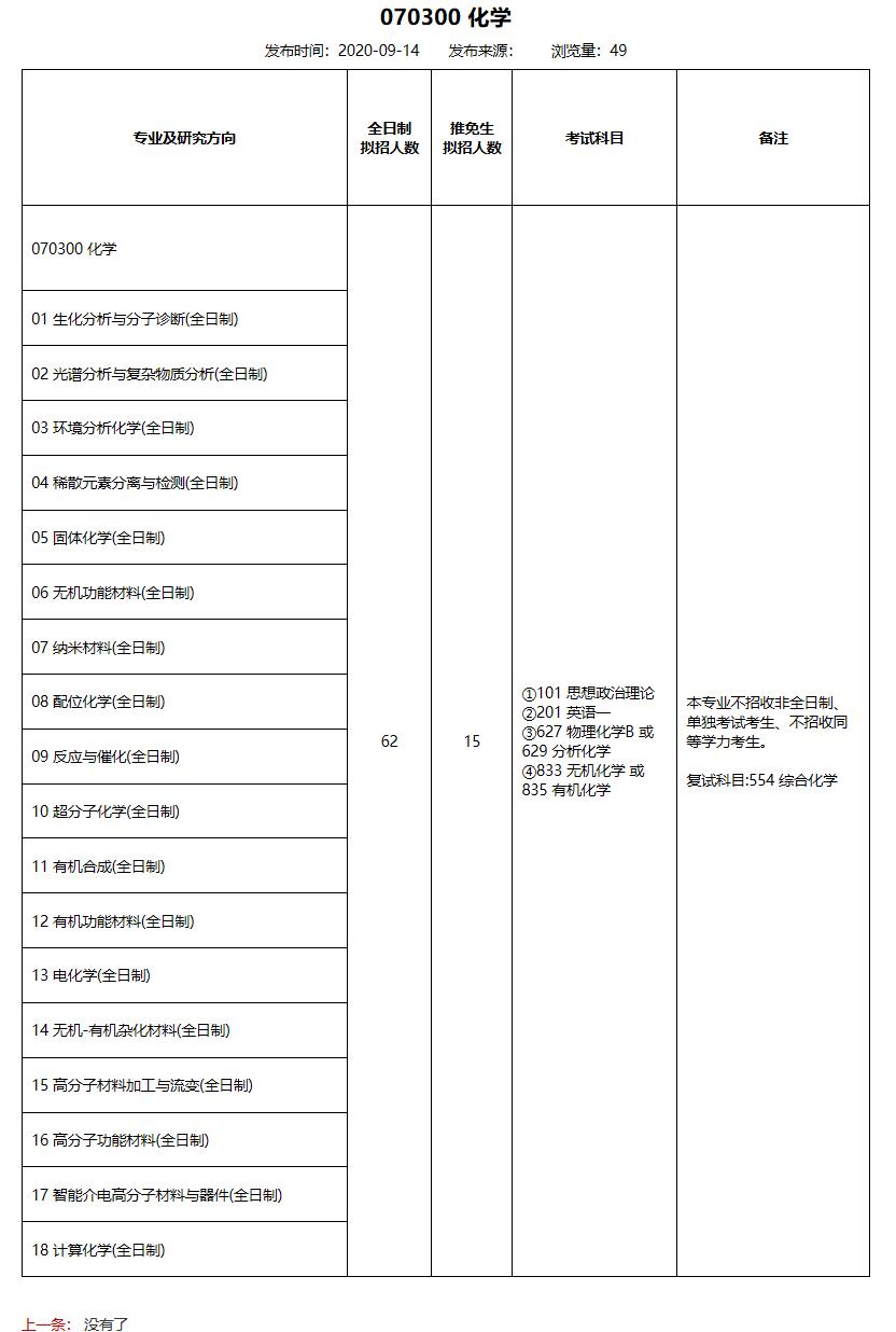 2021考研專業目錄:北京科技大學化學與生物工程學院070300 化學2021年碩士研究生招生專業目錄