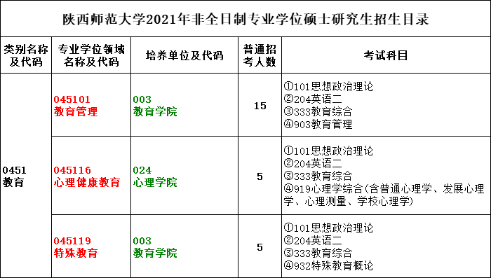 各位考生如果想知道2021某個院校具體招生人數是多少?考試科目有什么?復試要求都是什么?就需要從2021碩士研究生專業目錄開始看起,從專業目錄中找到自己需要的信息。今天,小編整理了“2021考研專業目錄:陜西師范大學2021年碩士研究生非全日制專業學位招生目錄”的相關內容,希望對大家有所幫助!
