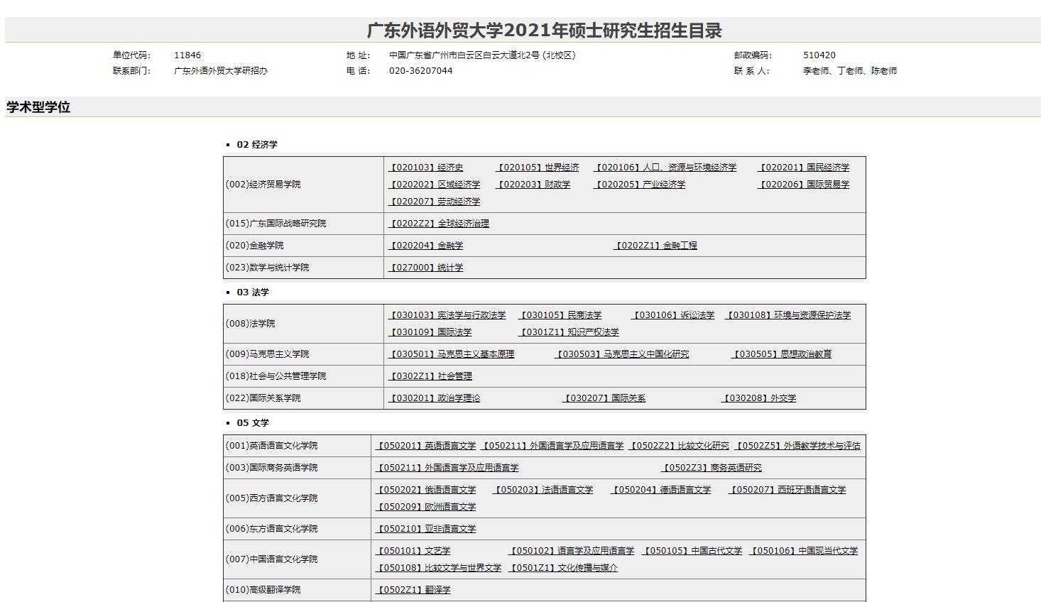 原文標題:廣東外語外貿大學2021年碩士研究生招生目錄