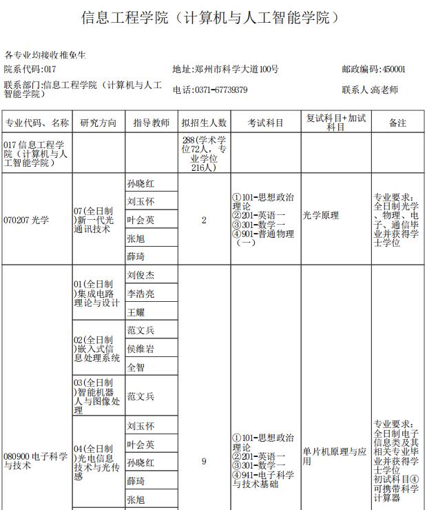 以上就是小編整理“2021考研專業(yè)目錄:鄭州大學(xué)2021年信息工程學(xué)院碩士研究生招生專業(yè)目錄”的全部內(nèi)容,想了解更多相關(guān)信息,請持續(xù)關(guān)注研線網(wǎng)!