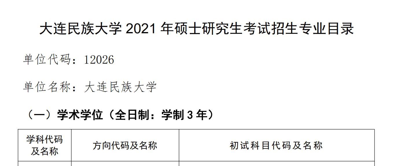 點擊查看:大連民族大學2021年碩士研究生考試招生專業目錄