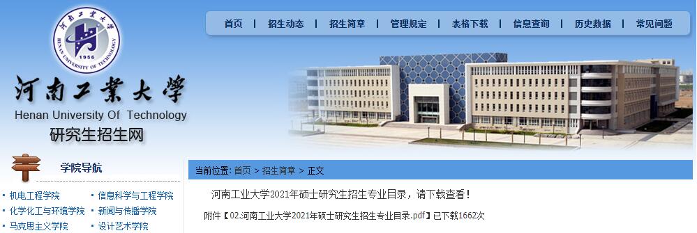 點擊查看:河南工業大學2021年碩士研究生招生專業目錄